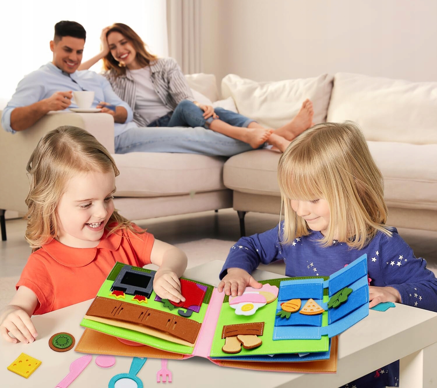 Буклет изготовлен из мягкого войлока, который не имеет острых краев и является детским. Вы можете быть уверены, что материалы не -токсичны и долговечны, даже если ваш ребенок будет использовать их интенсивно. Вам не нужно беспокоиться об разрушении - эта книга переживет много приключений. ☀