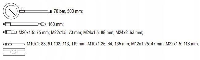 Прибор предназначен для профессионального использования в автосервисе. Применяется для диагностики двигателей с воспламенением от сжатия в легковых автомобилях и грузовых фургонах следующих марок: VW, Audi, Seat, Skoda, Fiat, Alfa Romeo, Lancia, Peugeot, Ford, Opel, Toyota, Mercedes, Rover. Изготовлен из стали С45, оксидированная поверхность обеспечивает достаточную долговечность инструмента.