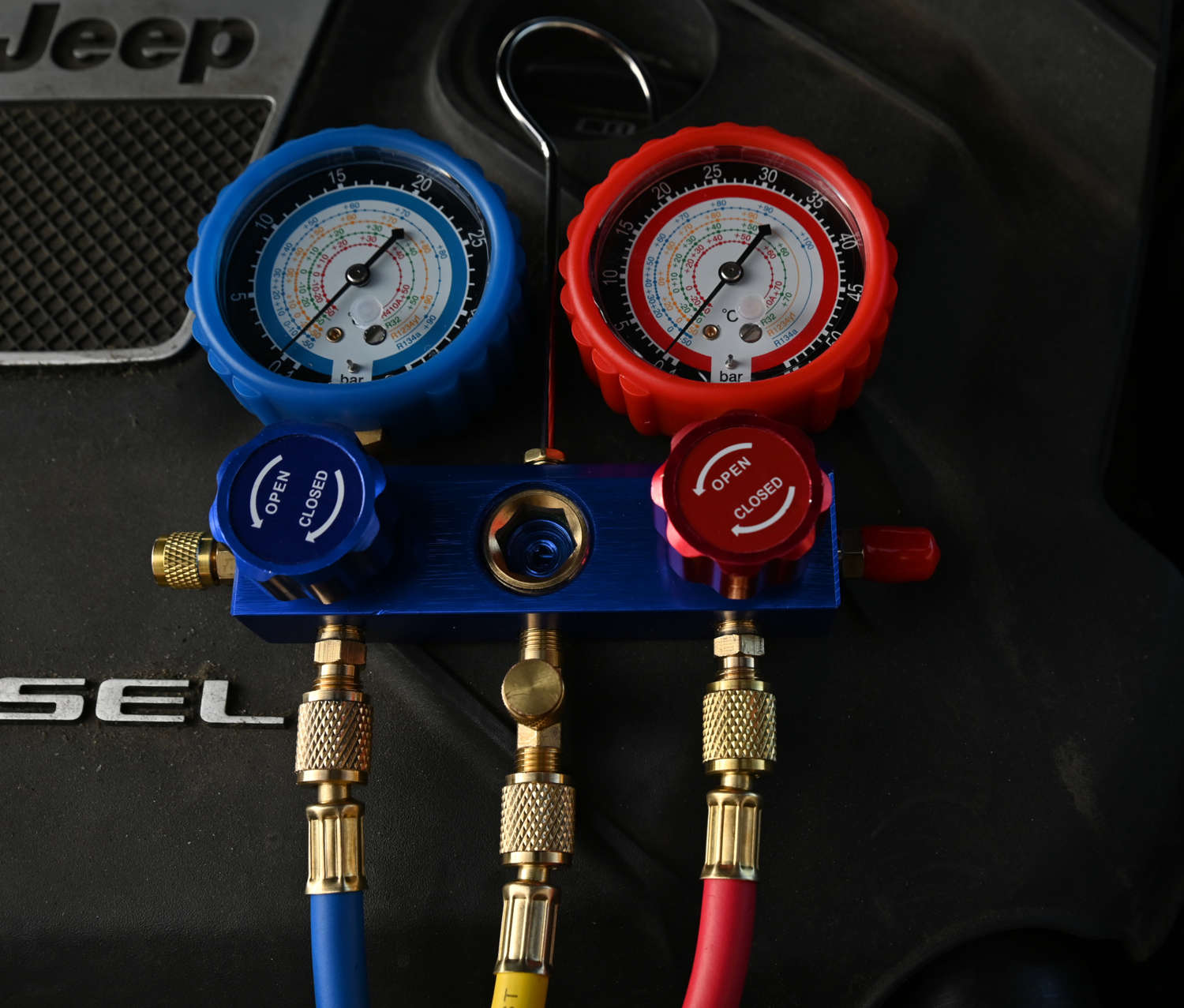 Манометры имеют разъемы, типичные для систем кондиционирования воздуха, использующих хладагент R134a. Однако, благодаря часам со шкалой для R134a, R1234YF, R32, R410a, после использования соответствующих адаптеров их также можно использовать для нового хладагента 1234YF, стационарных кондиционеров R32 и холодильного оборудования R410a.