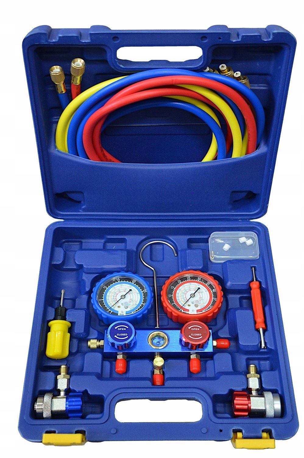 Манометры холодильного давления 55 бар для систем кондиционирования воздуха для R134a, R1234YF, R32, R410a 1/4 SAE + шланги + чемодан