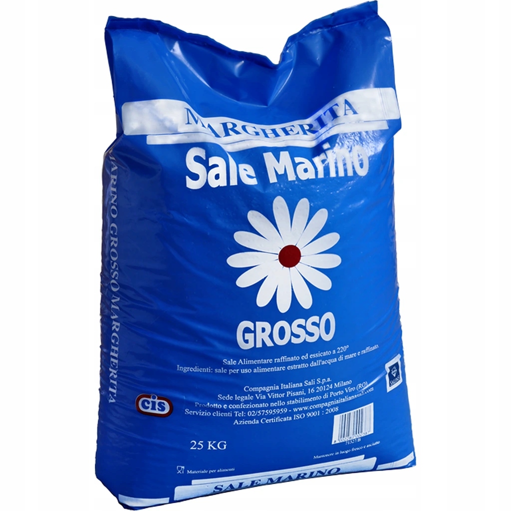 Морская соль «Маргарита Сале Марино Гроссо» — это пищевой соленый продукт высочайшего качества от известного итальянского производителя соли Compagnia Italiana Sali (СНГ). Соль добывается из морской воды на прибрежных соляных месторождениях, а затем транспортируется на завод СНГ в Порто Виро. Морская соль свободно хранится на обширных открытых площадках. В процессе обработки соль сначала преобразуется в высококонцентрированный раствор, из которого затем кристаллизуется чистый хлорид натрия. Сушка кристаллов соли происходит с помощью потока горячего воздуха с температурой до 220°С. Следующий этап производства – просеивание кристаллов NaCl на ситах с разным размером ячеек, в результате чего происходит разделение на отдельные размерные фракции, и их упаковка. Весь производственный процесс соответствует строгим законодательным требованиям, предъявляемым к производству продуктов питания и сырья, предназначенного для пищевого использования. Разумеется, в аналитической лаборатории регулярно анализируются пробы с отдельных этапов производственного процесса.