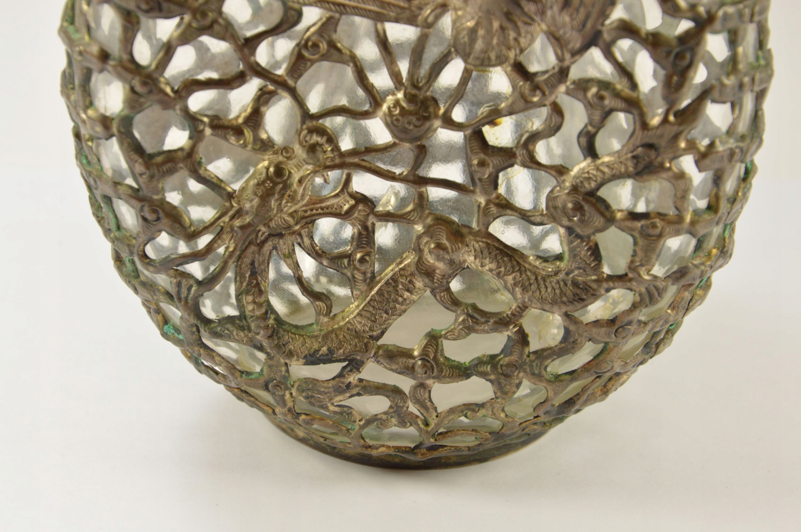 Уникальная, морская, предварительная бутылка. Изготовлен из стекла, переплетенная с открытой работой, покрытой сеткой, покрытой ударом. На животе изображение орла с дубовыми листьями и водяного дракона. Бутылка очень красиво сохранена с оригинальной пробкой. Это выглядит великолепно, он полностью функционален.