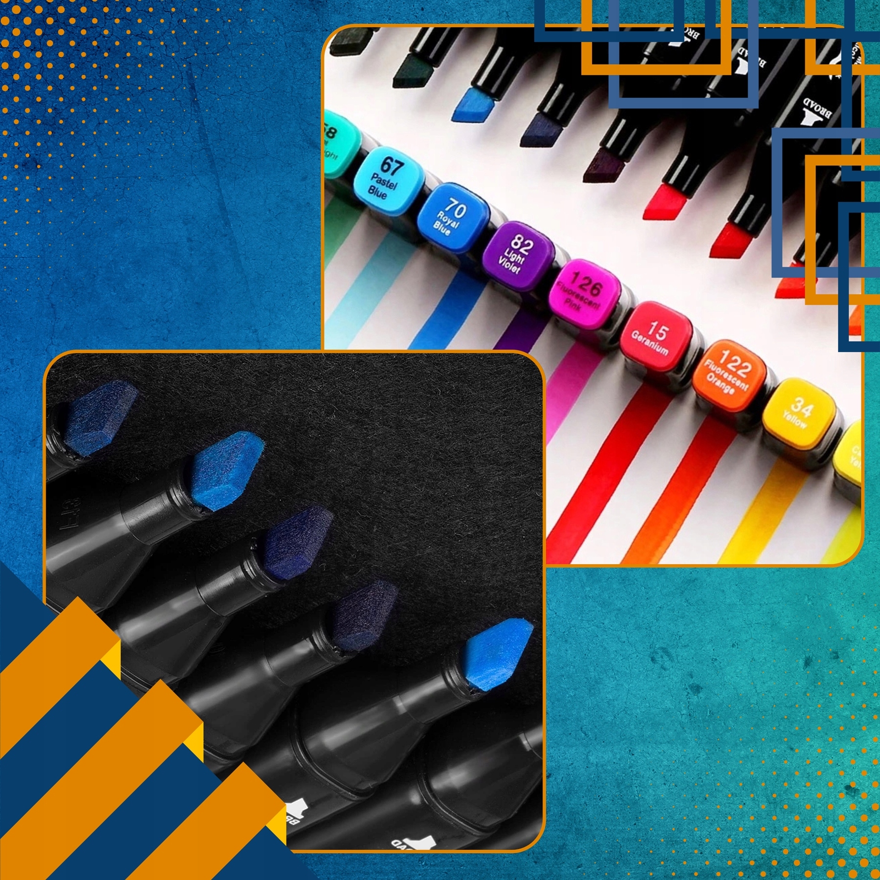 Набор из 80 двусторонних спиртовых маркеров в элегантной сумке — идеальный инструмент для каждого художника. Широкая цветовая гамма, эргономичная форма и нетоксичные чернила гарантируют универсальность, комфорт и безопасность.