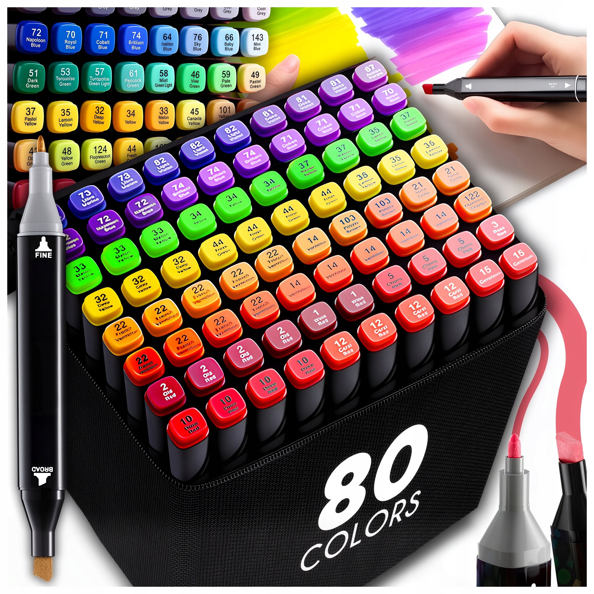 Набор из 80 двусторонних спиртовых маркеров в элегантной сумке – идеальный подарок любому художнику. Благодаря широкой цветовой гамме, качественной и практичной упаковке этот набор вдохновляет на творчество и гарантирует долгую радость от использования.