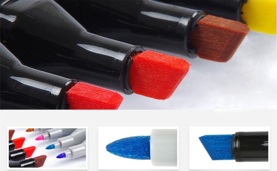 Два конца; широкий (плоский) и тонкий (точечный) — открывают огромные творческие возможности. Наконечники изготовлены из устойчивого к истиранию материала, поэтому маркеры прослужат долго. Волокна кончиков не расслаиваются, не расслаиваются и не вытекают.