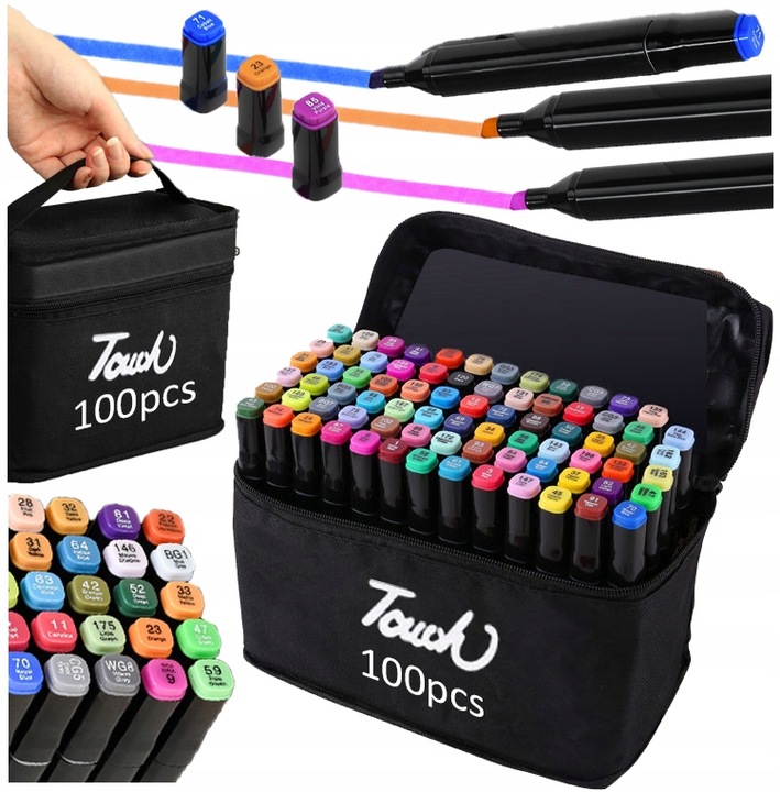 Набор содержит до 100 маркеров в различных цветах, характеризующихся высоким насыщением. Алкогольные маркеры позволяют применять цвета, создавать другие цвета и оттенки. Они позволяют использовать смешивание, затенение и производные. Маркеры заполняют иллюстрацию без полос и видимой комбинации последовательно применяемых слоев. Высококачественное пигмент и большое количество цветов являются неограниченными возможностями при создании иллюстраций.