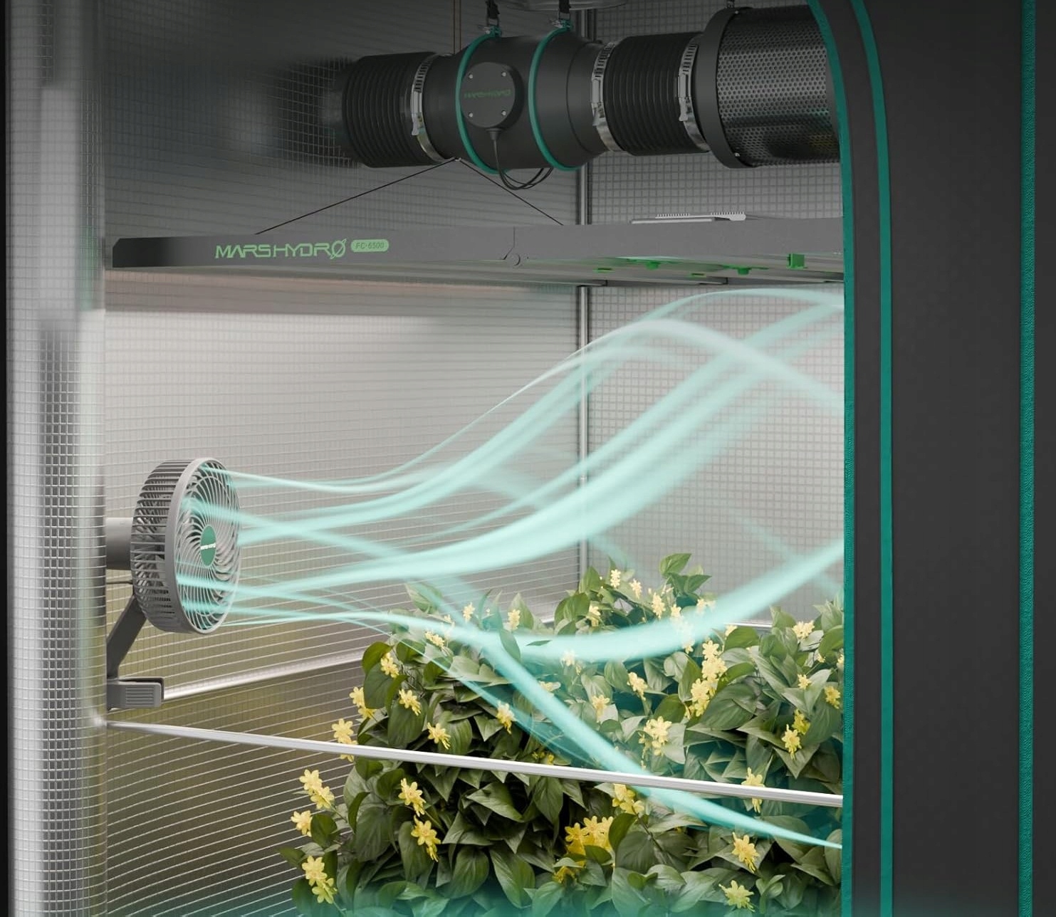 Вентилятор для палатки MARS HYDRO M6, 10 скоростей, регулируемый по Wi-Fi