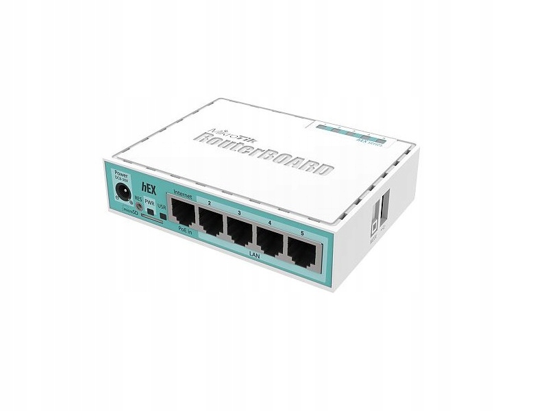 Маршрутизатор MIKROTIK HEX представляет собой пятипортовый маршрутизатор Gigabit Ethernet для мест, где не требуется беспроводное соединение. Устройство имеет порт USB 2.0. Эта новая обновленная версия HEX содержит несколько улучшений производительности. Он доступен по цене, небольшой и простой в использовании, но в то же время оснащен очень мощным двухъядерным процессором с частотой 880 МГц и оперативной памятью 256 МБ, способным работать со всеми расширенными конфигурациями, поддерживаемыми RouterOS. Поддерживается аппаратное шифрование IPsec (~450 Мбит/с) и пакет серверов dude, слот microSD также обеспечивает более высокую скорость хранения базы данных на карте microSD.