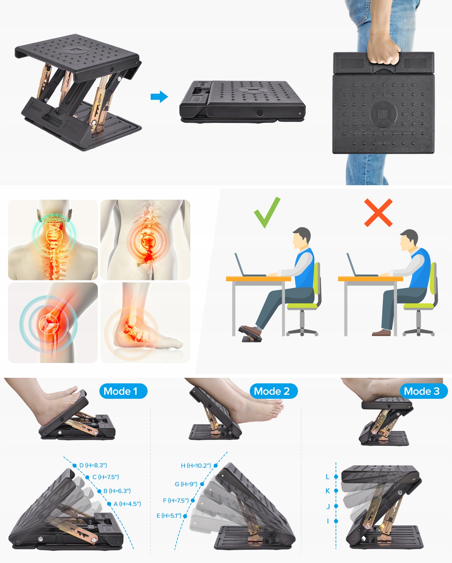 - эргономическая подставка для ног, не требует установки, прост в летнее , продукт может быть определен на многих углах, чтобы обеспечить комфорт, поверхность с текстурой может уменьшить напряжение во время работы .