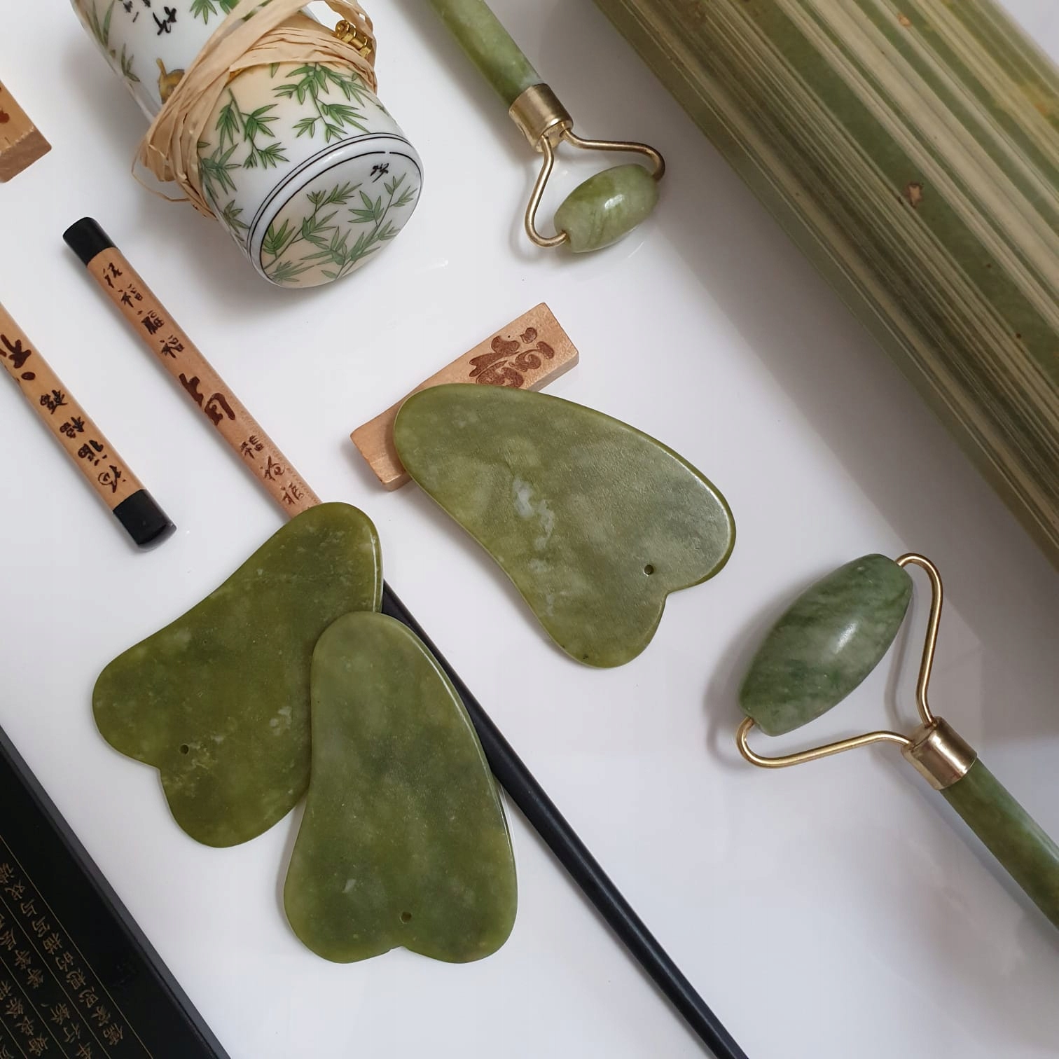 МАССАЖЕР ДЛЯ ЛИЦА НЕФРИТОВЫЙ РОЛИК + КОРОБКА ГУА ША