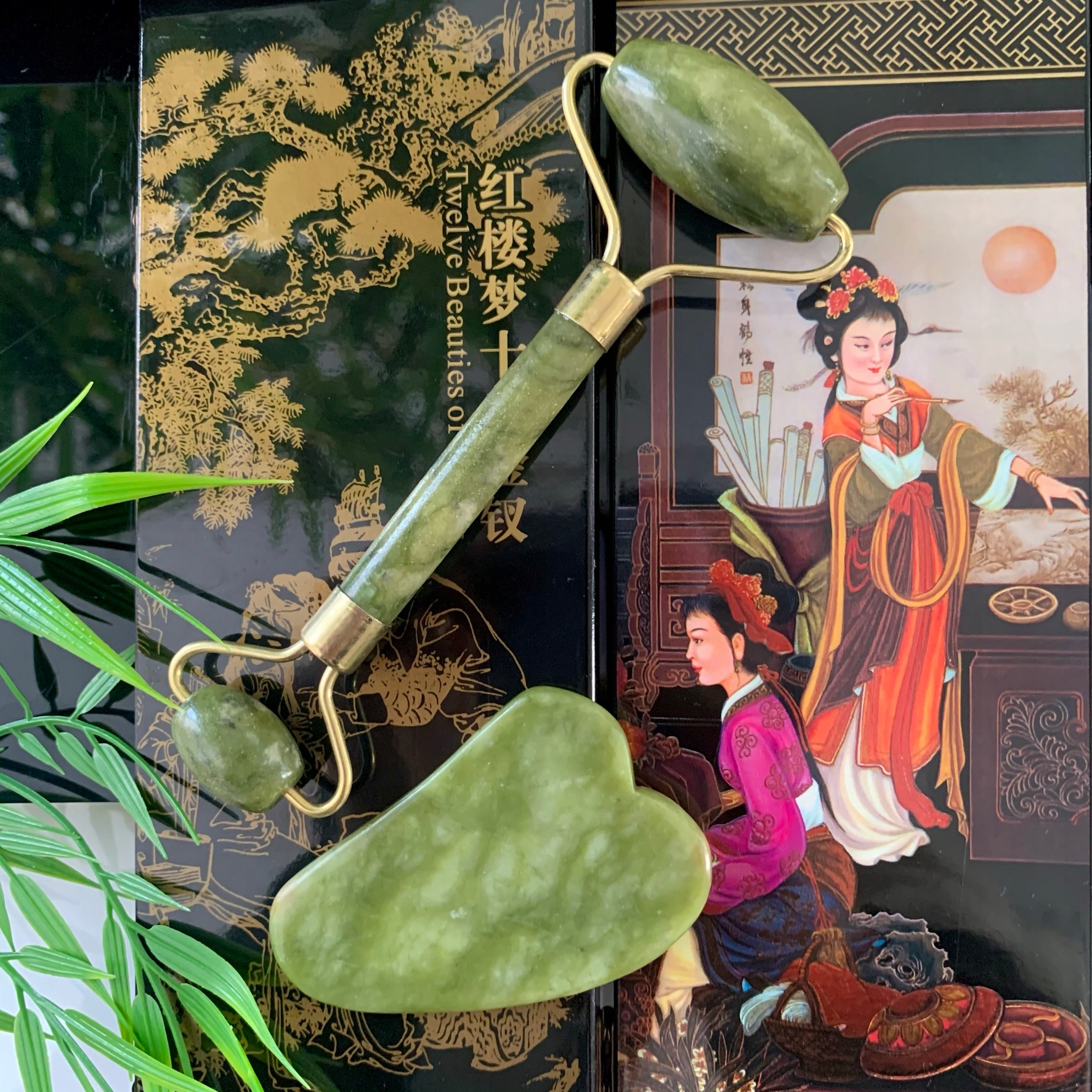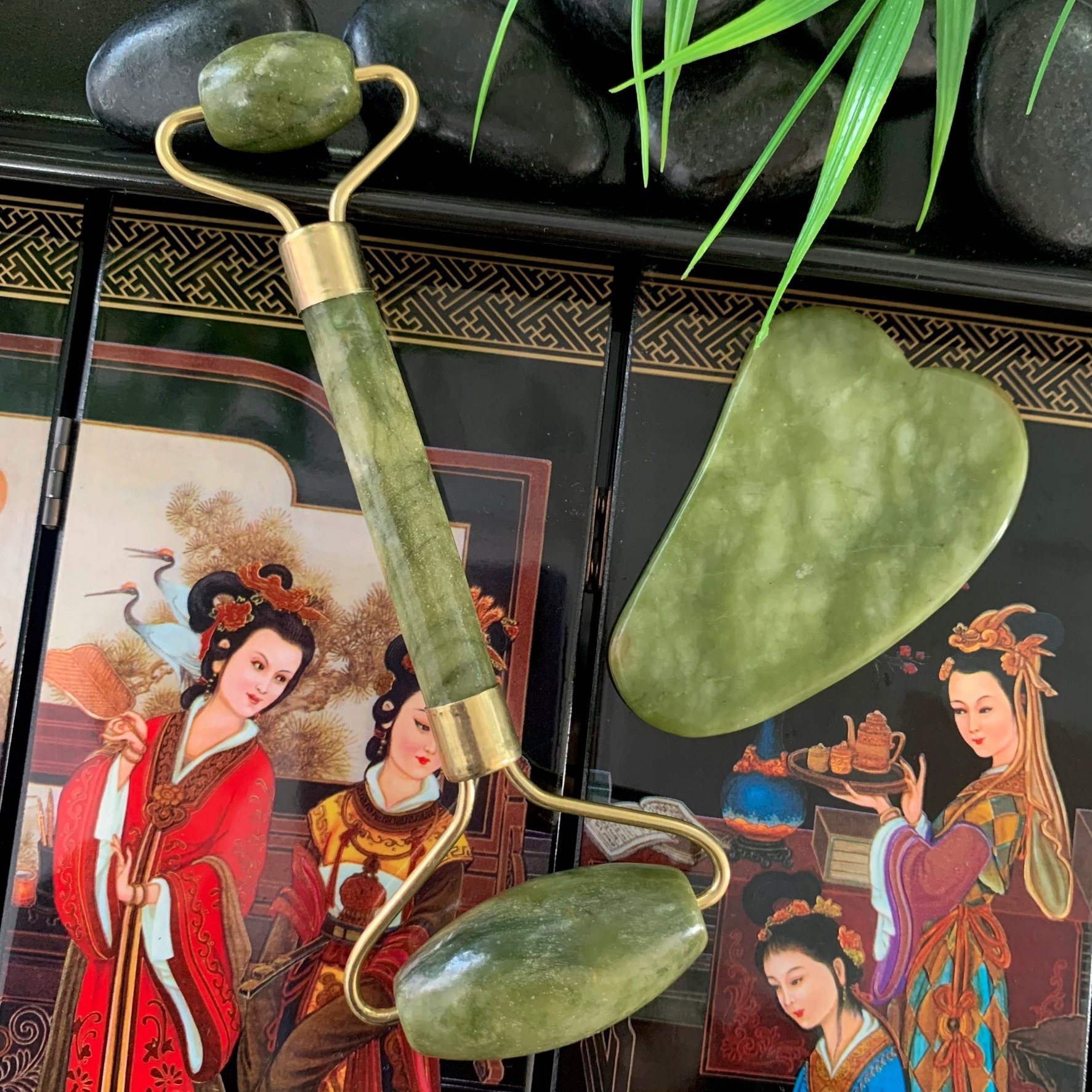 РОЛИКОВЫЙ МАССАЖЕР ДЛЯ ЛИЦА JADE + КОРОБКА ГУА ША