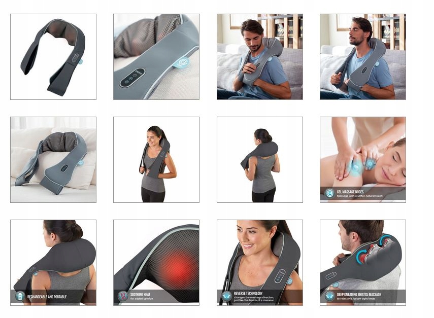 Скованность шеи может повлиять на общее самочувствие и обычно вызвана плохой осанкой и плохими условиями сна. Почувствуйте приятные ощущения от настоящего массажа теплым массажером для шеи и плеч. Идеально подходит для использования дома или в дороге, он оснащен массажными головками для глубокого массажа шиацу.