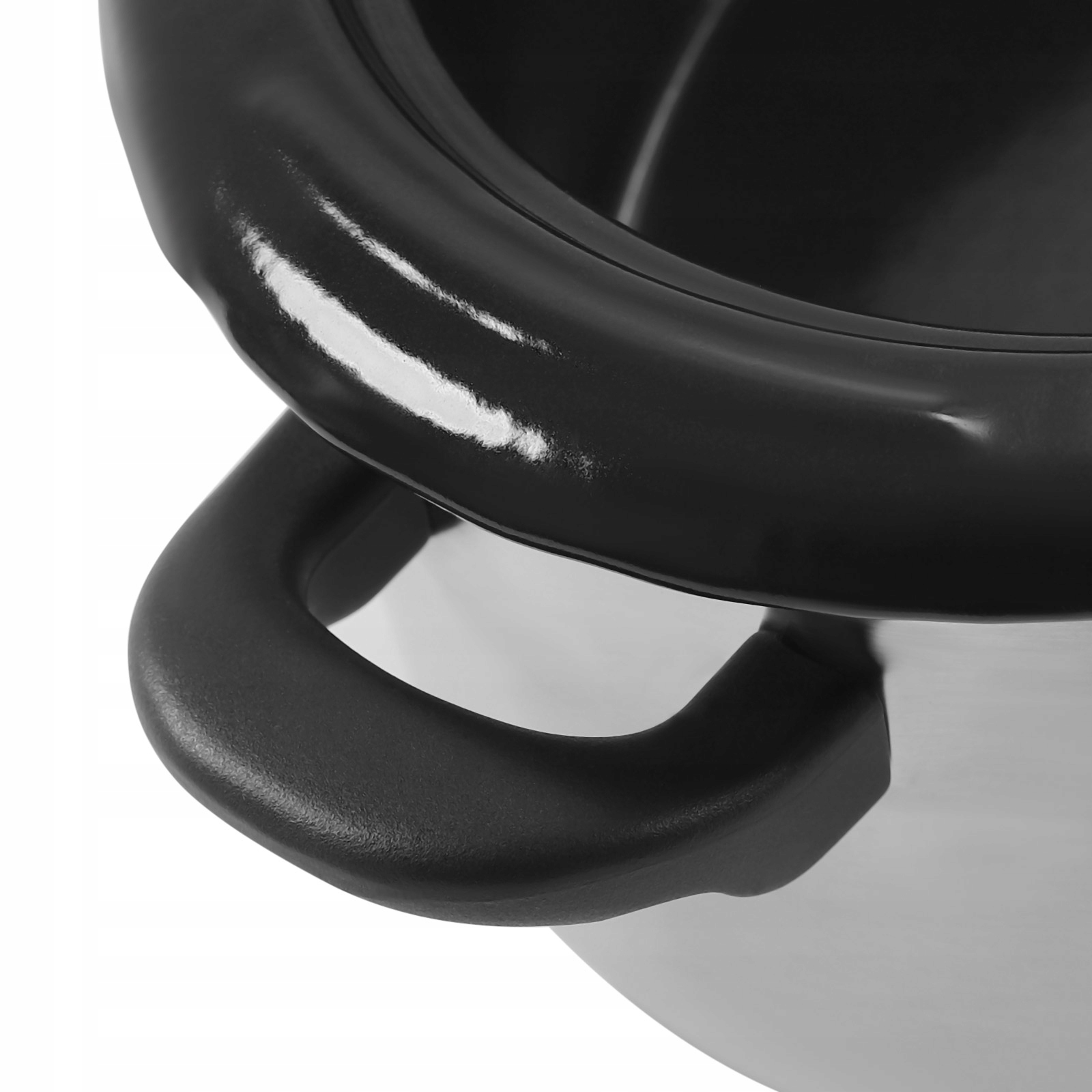 - Надежная конструкция: Этот продукт состоит из двухслойной эмалированной внутренней емкости, крышки из лакированного алюминия и корпуса из нержавеющей стали. , поэтому он защищен, устойчив к ржавчине и повреждениям. Двухслойная кастрюля, которая предотвращает повреждение нагревателей камнями и предотвращает ожоги рук.