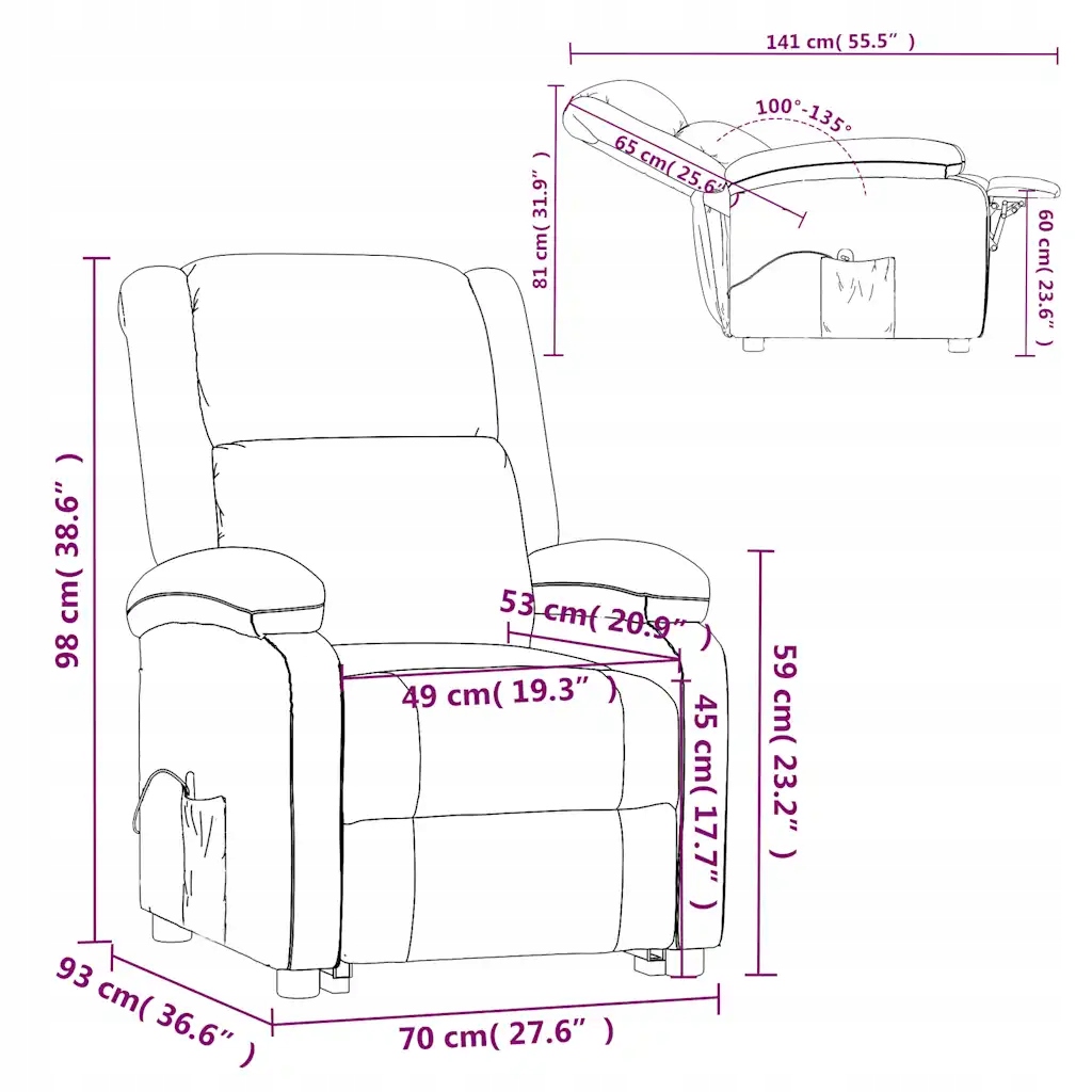 Сядьте и отдыхайте в этом чрезвычайно удобном массажном кресле! давление. Кроме того, вы можете выбрать различные программы массажа, используя прикрепленный пульт дистанционного управления. Функция массажа подается через USB -разъем и требует сертифицированного питания USB 5V, который не включен. Ткань представляет собой простой и гладкий вид и является дышащим и долговечным. Это складное кресло удобно и долговечно. 141 x 81 см (ширина x глубина x Высота)