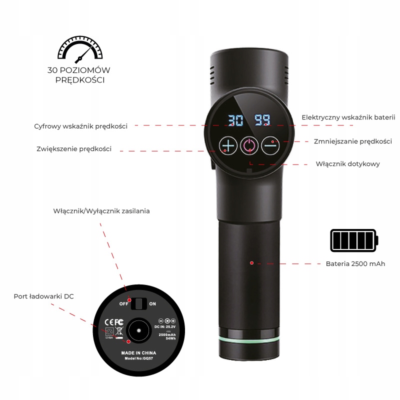 ☑ Служба мощности и мобильности - с заменой батареи с емкостью 2500 мАч , этот массажер предлагает длительное использование без необходимости частой зарядки