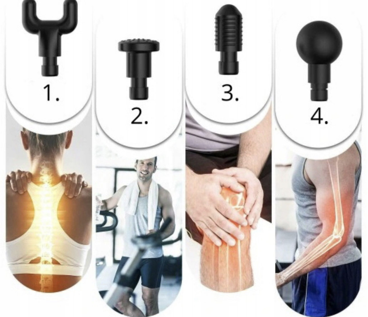 - 4 сменных насадки: для разных массажных мест/групп мышц