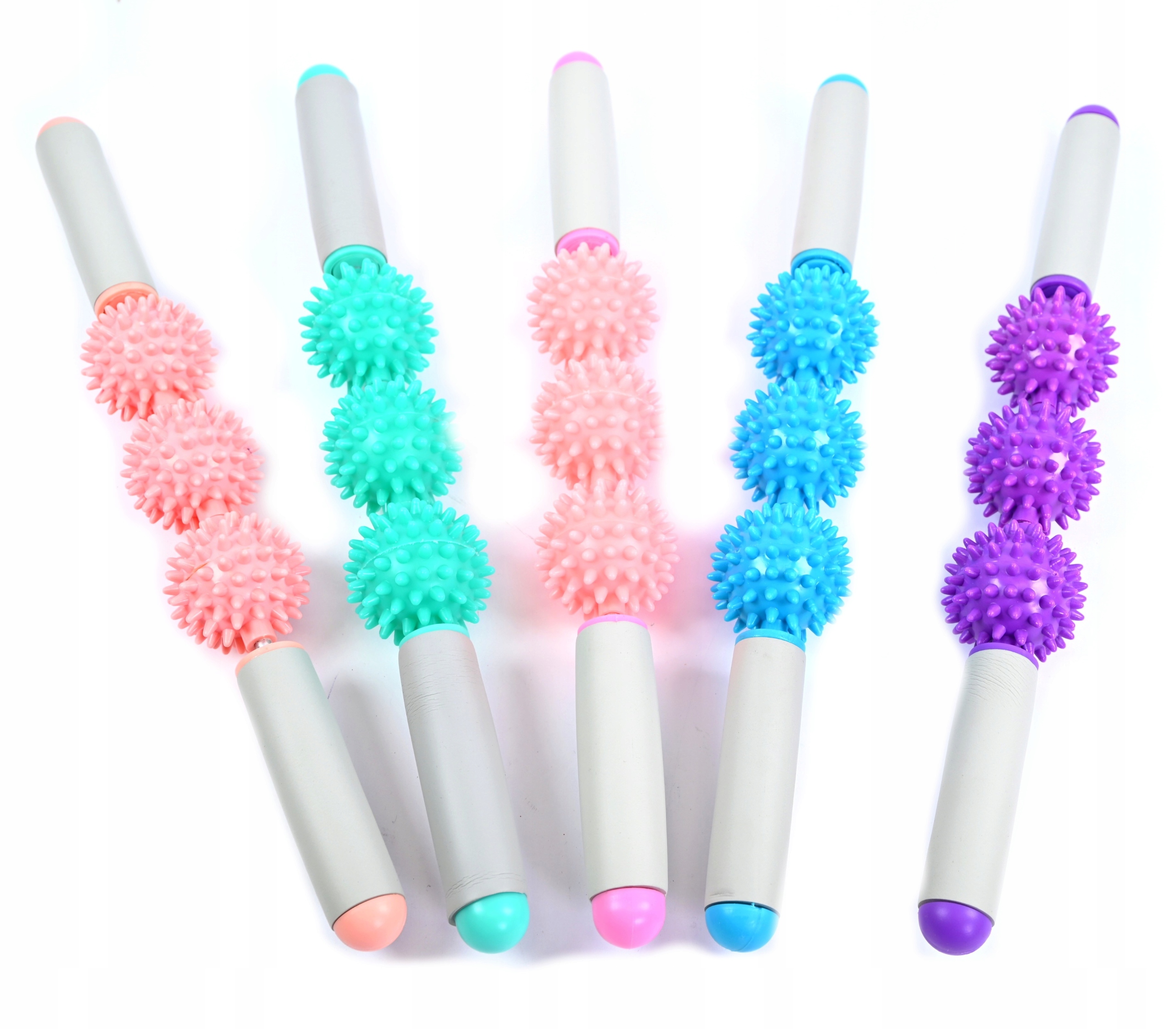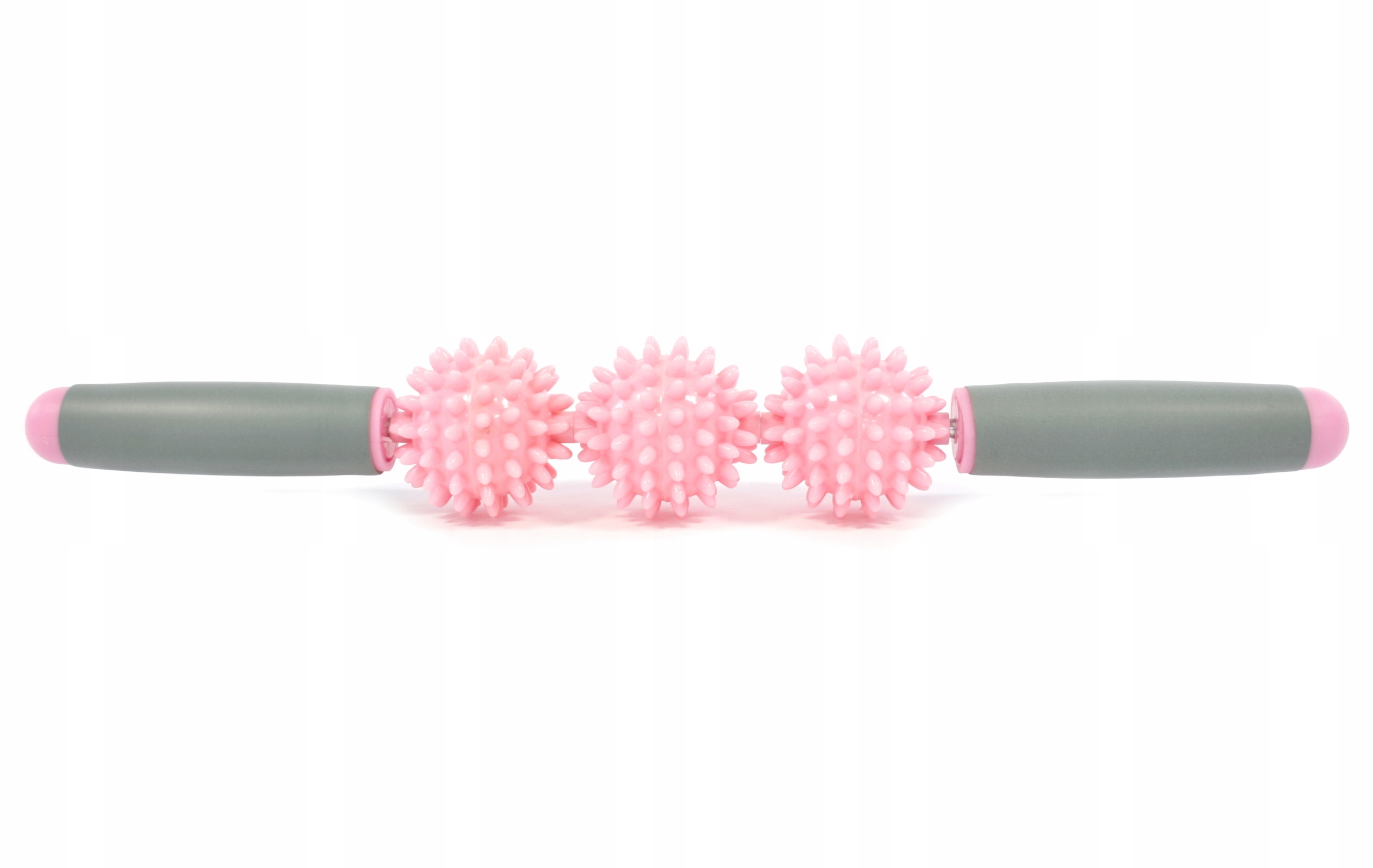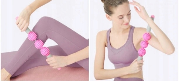 Массажный ролик оснащен тремя шариками с выступами для массажа мышц.