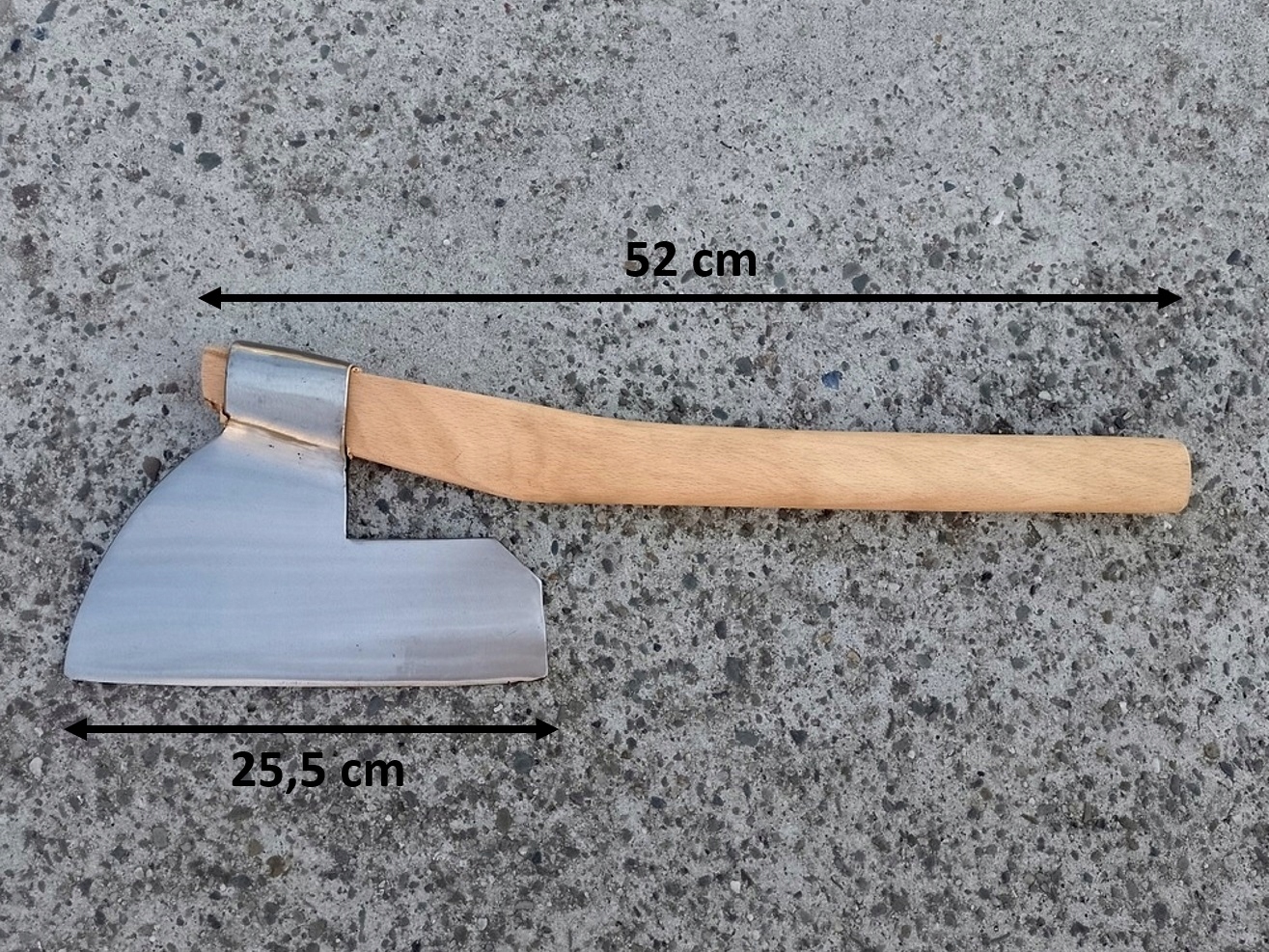 Топор обрамлен в буковом стиле с длиной около 52 см. Сохраненное столовое масло.