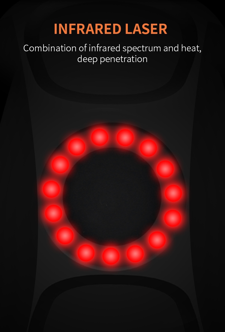 - красный свет ir проникает в глубокую зону колена/локоть и успокаивает симптомы боли Согласится с пост -травматическими условиями и болью, расположенными в коленях