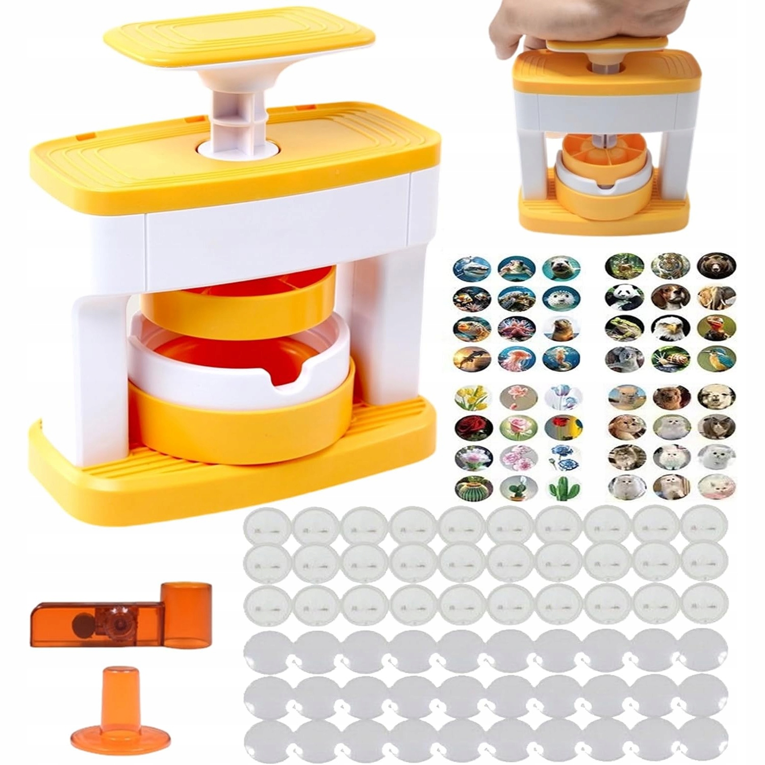 МАШИНА ДЛЯ БЕЙДЖЕЙ СДЕЛАЙ САМ ПРЕСС ДЛЯ ДЕТЕЙ С 48 БУЛАВКАМИ И НАКЛЕЙКАМИ