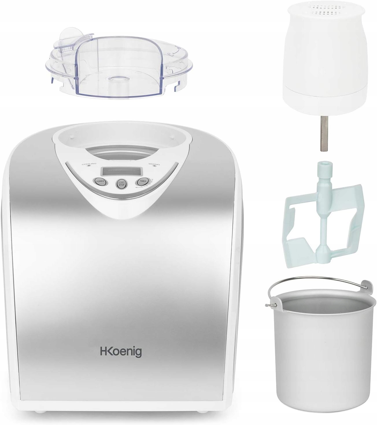 Машина для мороженого H.Koenig Professional HF180 – электрическая – 1 л – 135 Вт – функция охлаждения – быстрое приготовление мороженого, замороженных йогуртов и сорбетов