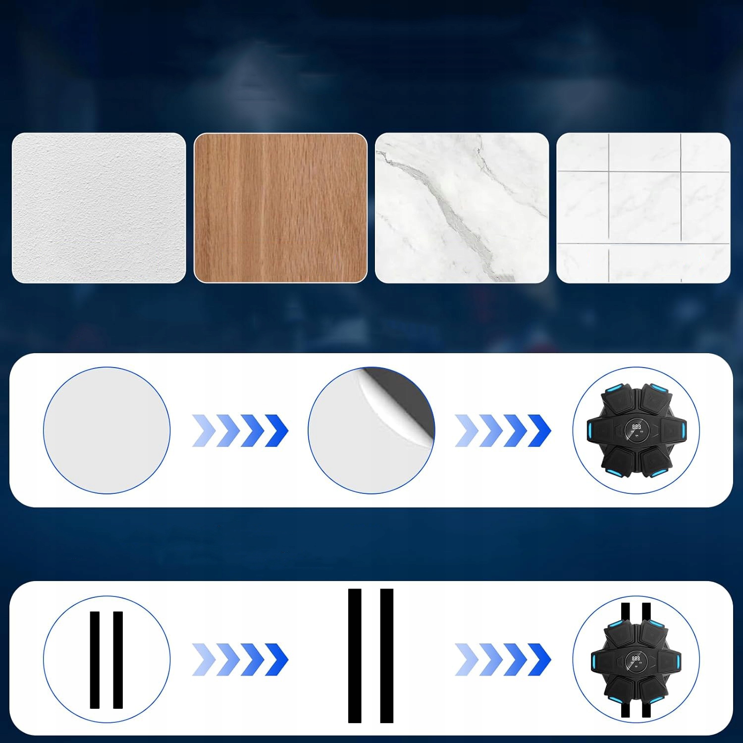 🥊🥊【Простота установки и прочная адгезия】 Музыка для настенного крепления, экономия места и отсутствие необходимости сверлить. Просто наклейте двусторонний скотч на боксерский инвентарь и стену. Прочная лента с крючками и петлями надежно фиксирует музыкальный боксерский тренажер на стене и не отслаивается. Когда вы продолжаете бить по ящику, умный боксерский автомат будет плотнее прилипать к стенам.