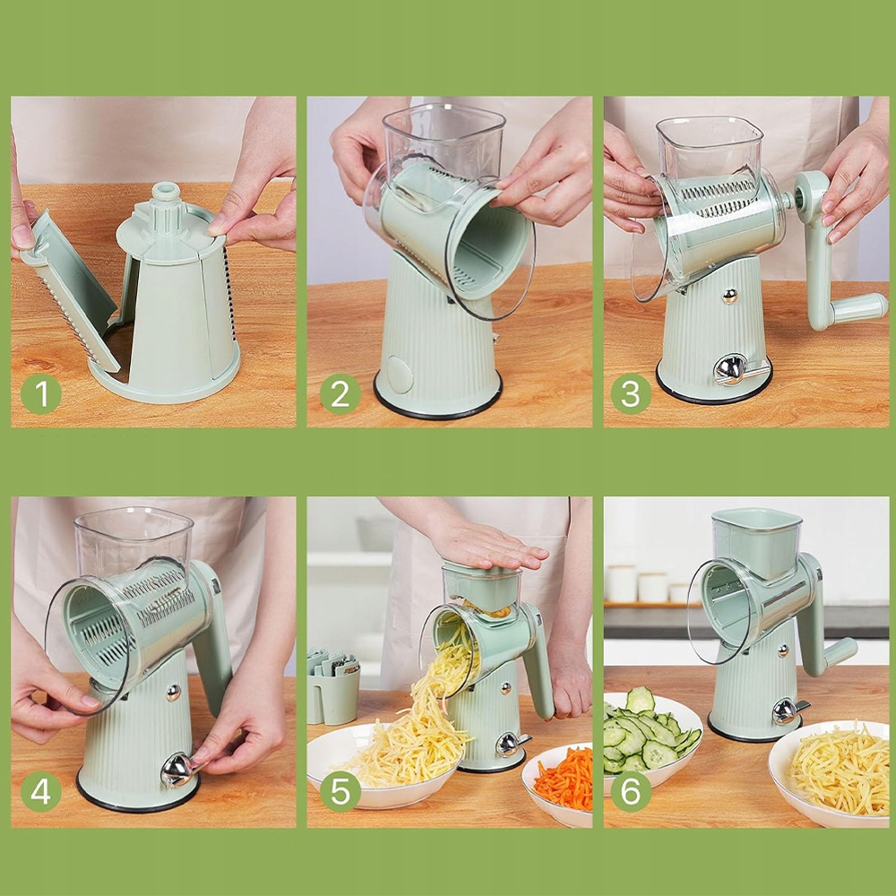 ✔️Улучшенная, удобная в использовании конструкция: с большим отверстием для продуктов и прочным, нескользящим основанием с присоской cup, по сравнению с другими вращающимися терками, терка 5-в-1 отличается превосходной режущей способностью и стабильностью, что облегчает работу на кухне. Терка для сыра 5-в-1.