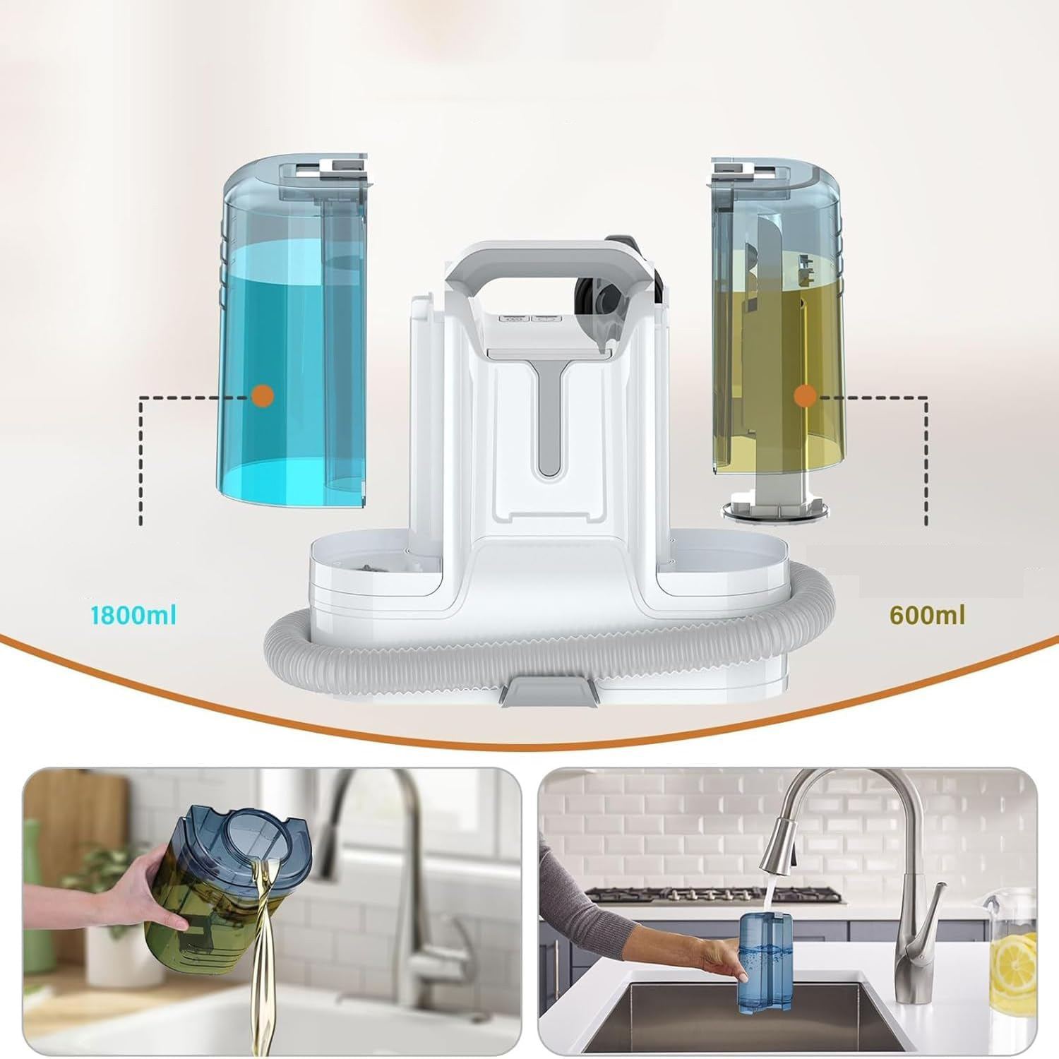 Бак для чистой воды на 1800 мл имеет большую емкость, а бак для грязной воды на 600 мл хранит отходы отдельно. Чистая и грязная вода остаются полностью разделенными, что предотвращает перекрестное загрязнение и повышает эффективность очистки.