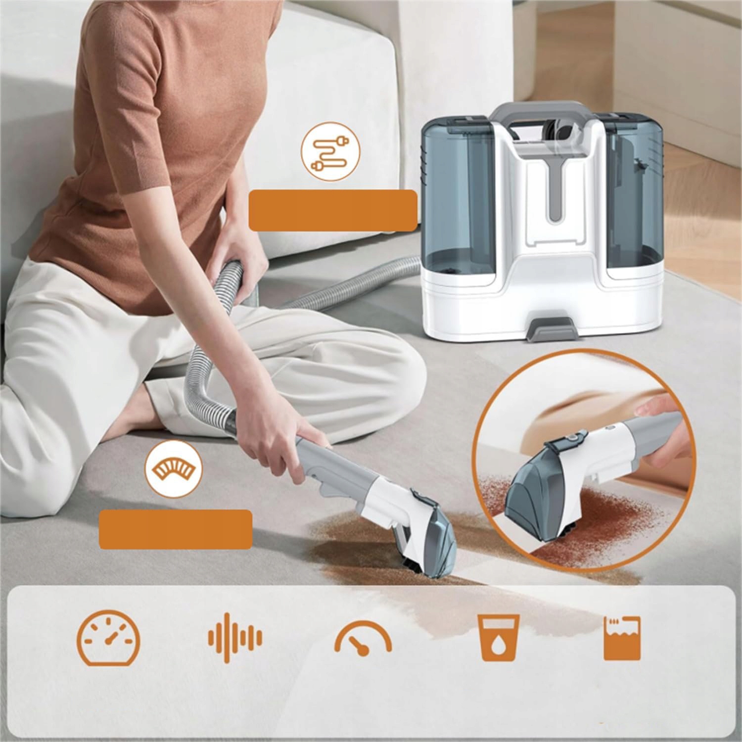 Оснащен надежным двигателем мощностью 450 Вт, который обеспечивает быстрое удаление пятен. Уровень шума 85 дБ обеспечивает бесшумную работу и позволяет без труда обойти каждый уголок вашего дома.