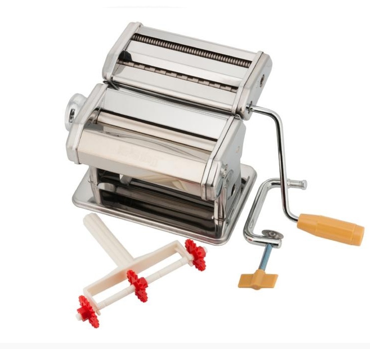 Машина позволяет легко и быстро приготовить домашнюю пасту, а также раскатать тесто до нужной толщины. Она изготовлена из полированной нержавеющей стали и имеет очень прочную конструкцию. Основание машины оснащено нескользящим покрытием. скользящие ножки.Режущие ролики и другие механические элементы изготовлены из закаленной стали.