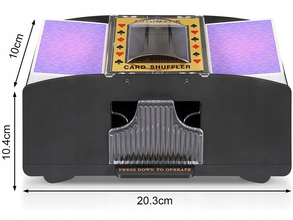 - ➡️ Совместимость с большинством карт! Шаффлер поддерживает 1-2 колоды стандартных игральных карт, включая покер, бридж и пластиковые карты для UNO, Техасского Холдема и Блэкджека.