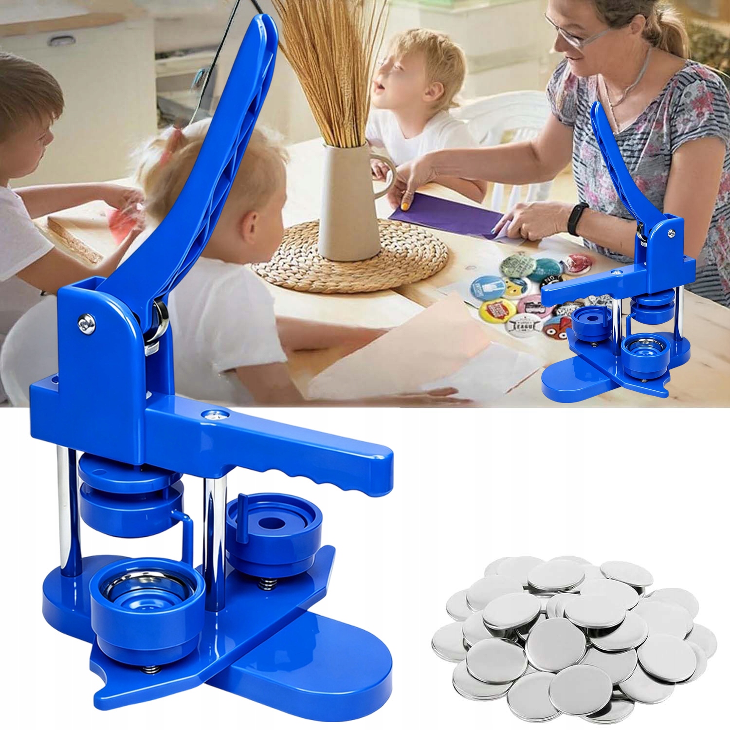 Машина для самотиснения диаметром 58 мм, которую можно использовать для изготовления небольших подарков, таких как значки для лацканов, открывалки, наклейки на холодильник, брелоки и т. д. В машине используется прочный пластик, корпус и форма машины интегрированы, она характеризуется легким весом, длительным сроком службы и простотой эксплуатации, что позволяет в полной мере использовать практические навыки ребенка.