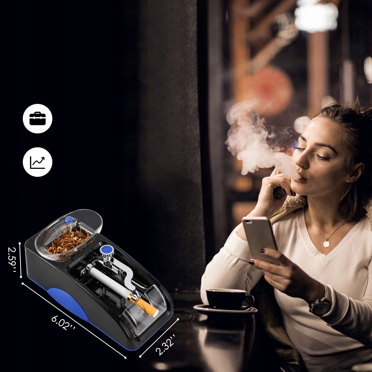 🚬🚬🚬 Экономия времени: С электрической сигаретной машиной процесс скручивания сигареты занимает всего несколько секунд, что экономит время и усилия. Более того, машина может производить больше сигарет за короткое время.
