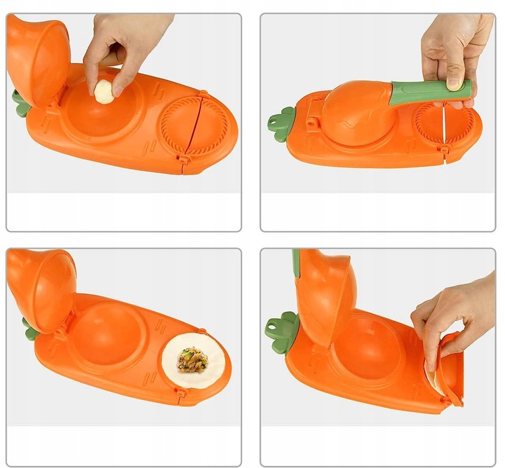 Пельменница очень проста в использовании: достаточно нажать на тесто, чтобы получились идеальные пельмени.