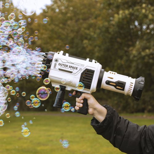 Этот мощный пистолет для пузырей с 60 отверстиями может выдувать сотни удивительных пузырей в минуту. Удобная ручка для переноски и возможность зарядки позволяют в течение 30 минут (время работы) интенсивно развлекаться на свежем воздухе.