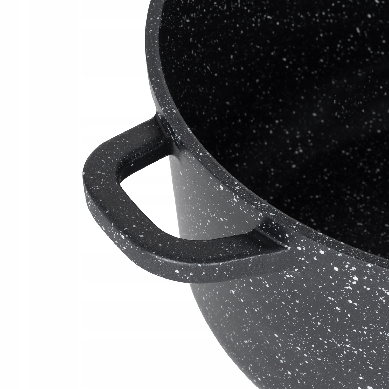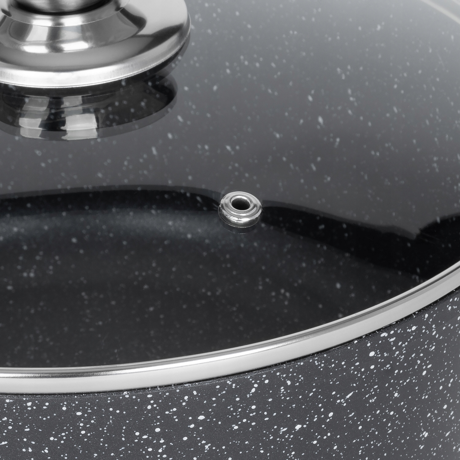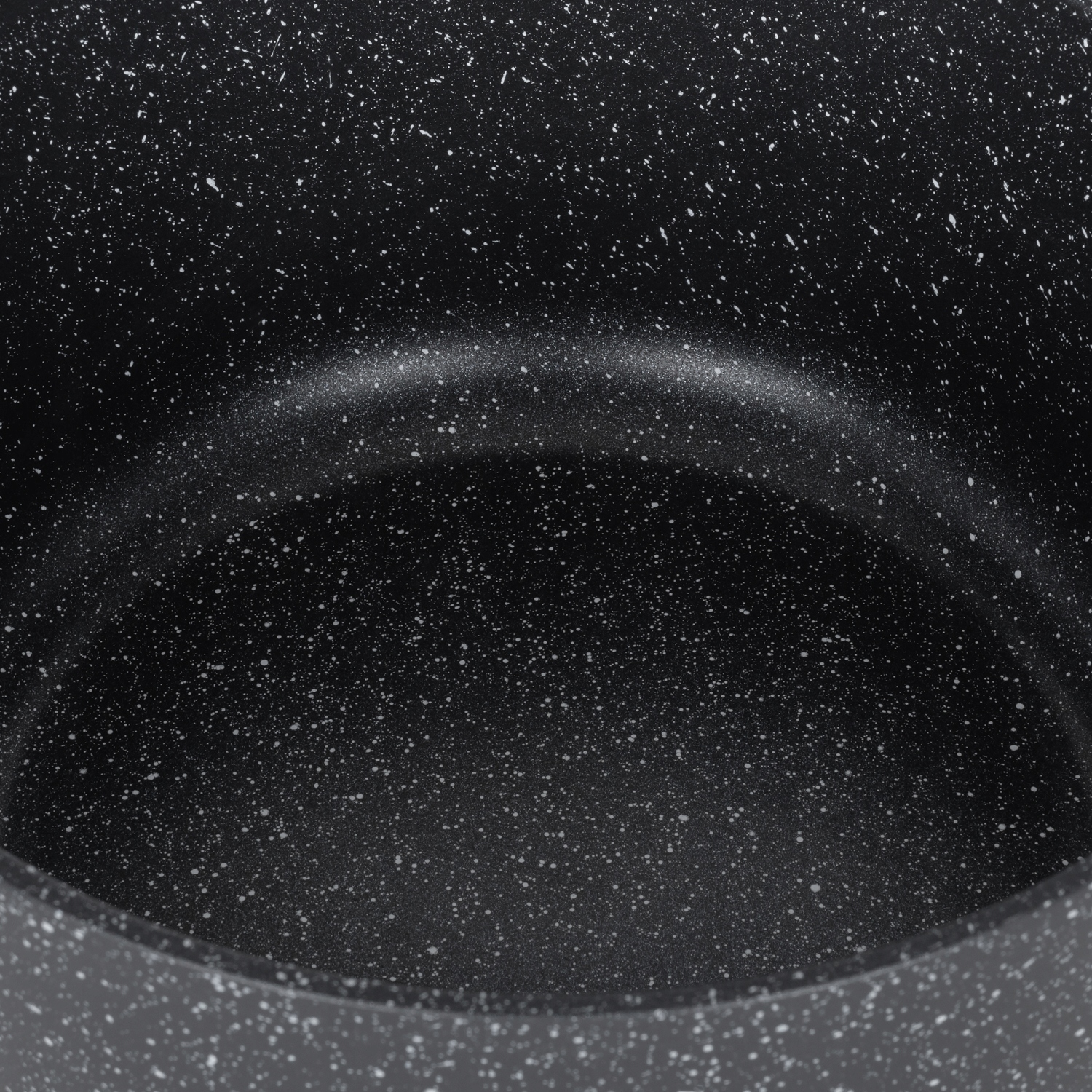 Кастрюля имеет трехслойное мраморное покрытие, которое предотвращает пригорание и пригорание продуктов.