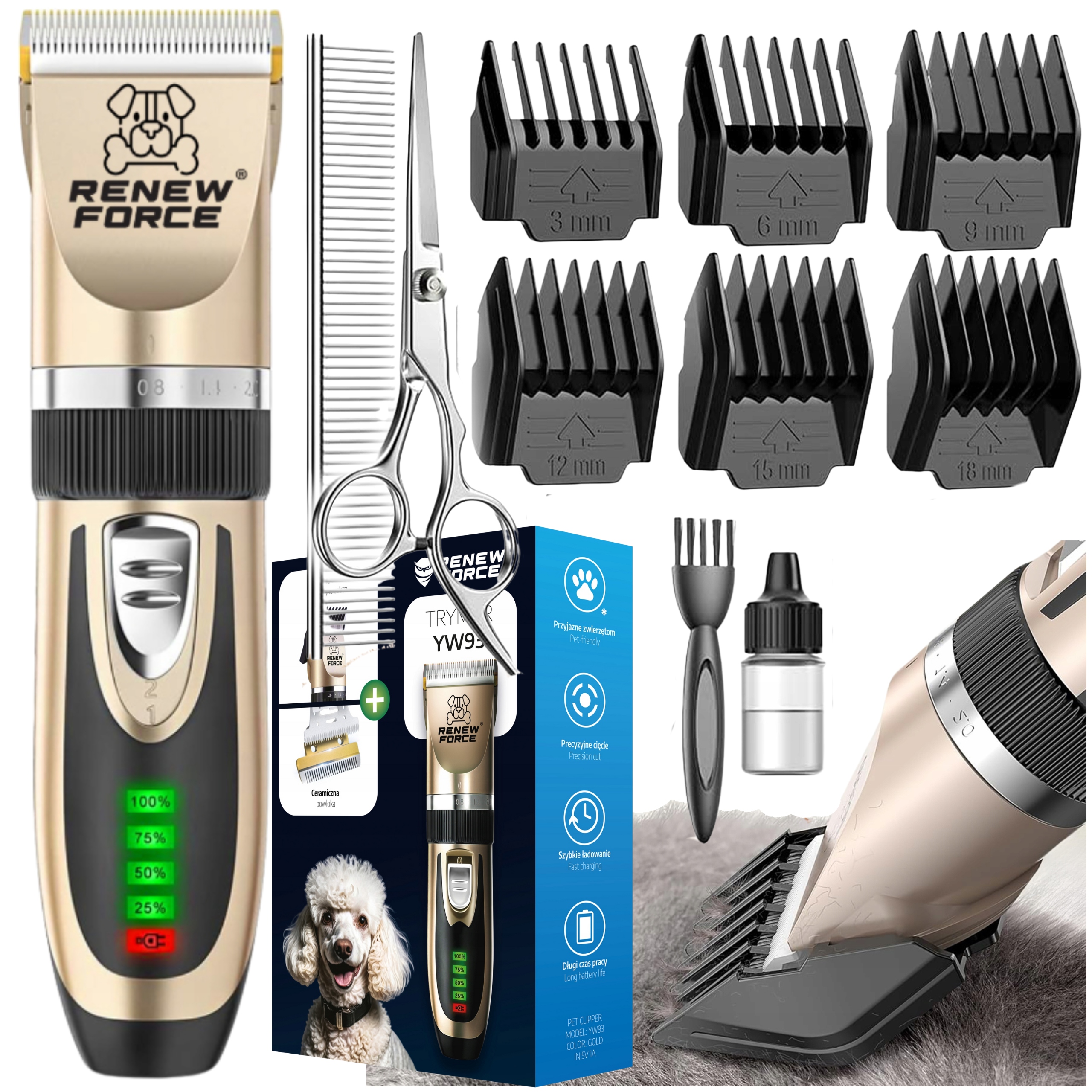 Электрическая машина для резки собак и других домашних животных - отличное устройство, которое позволит вам обеспечить безупречный вид и комфорт вашего питомца ! Стальные лезвия обеспечивают совершенно точную стрижку. Длина щетинок без каких -либо вложений может быть отрегулирована вручную с помощью поворотной ручки. Тем не менее, наложения, включенные в набор помогают в моделировании более длинных волос. Следует помнить, что бритва адаптирована к домашним животным. Его нельзя использовать, чтобы разрезать разведывающих животных, таких как овцы.