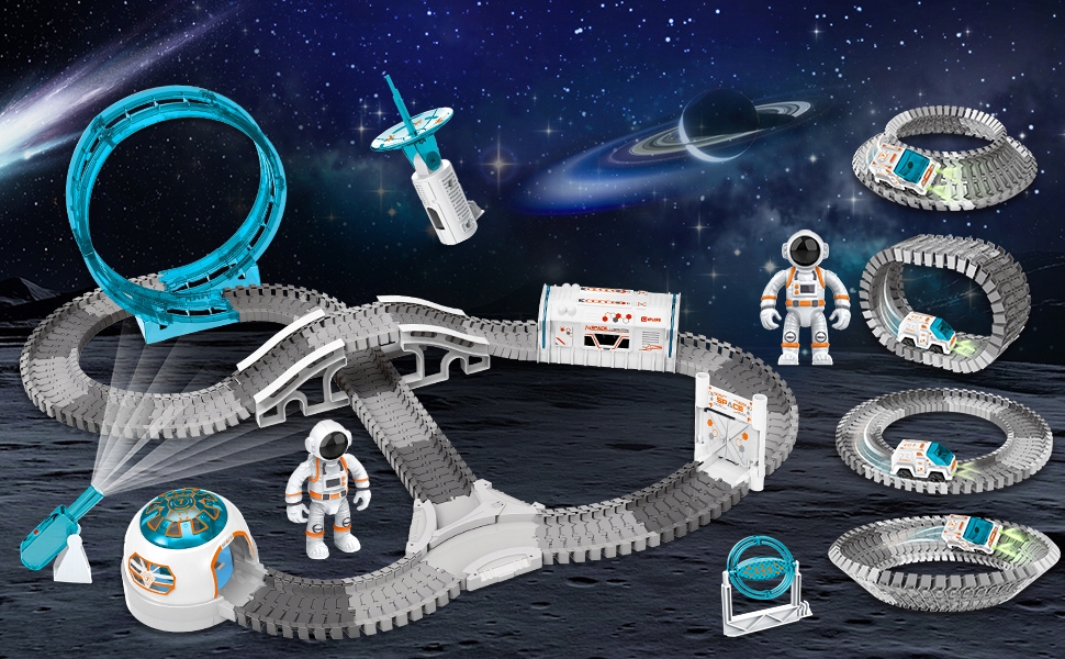 - ❤️Космическая дорожка изготовлена из экологически чистого высококачественного пластика, соответствующего стандартам безопасности ASTM , и поэтому он достаточно прочный. Входящая в комплект гоночная машинка загорается, и всем детям это нравится.