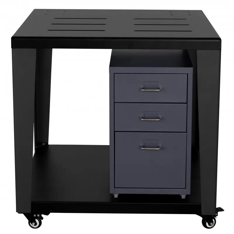 Стол для маркировки, предназначенный для резьбонарезных станков, представляет собой надежное и функциональное решение для профессионалов. Он имеет отверстия для крепления рычага для заправки резьбы и верхнюю часть из листового металла толщиной 5 мм с пазами, позволяющими установить тиски. Этот высококачественный стол размерами 700 м х 600 мм 720 мм обеспечивает стабильность, точность и мобильность при обработке резьбы. Дополнительно стол оснащен шкафом с выдвижными ящиками размером 280х410х480 мм, что обеспечивает удобное и практичное хранение необходимых предметов.