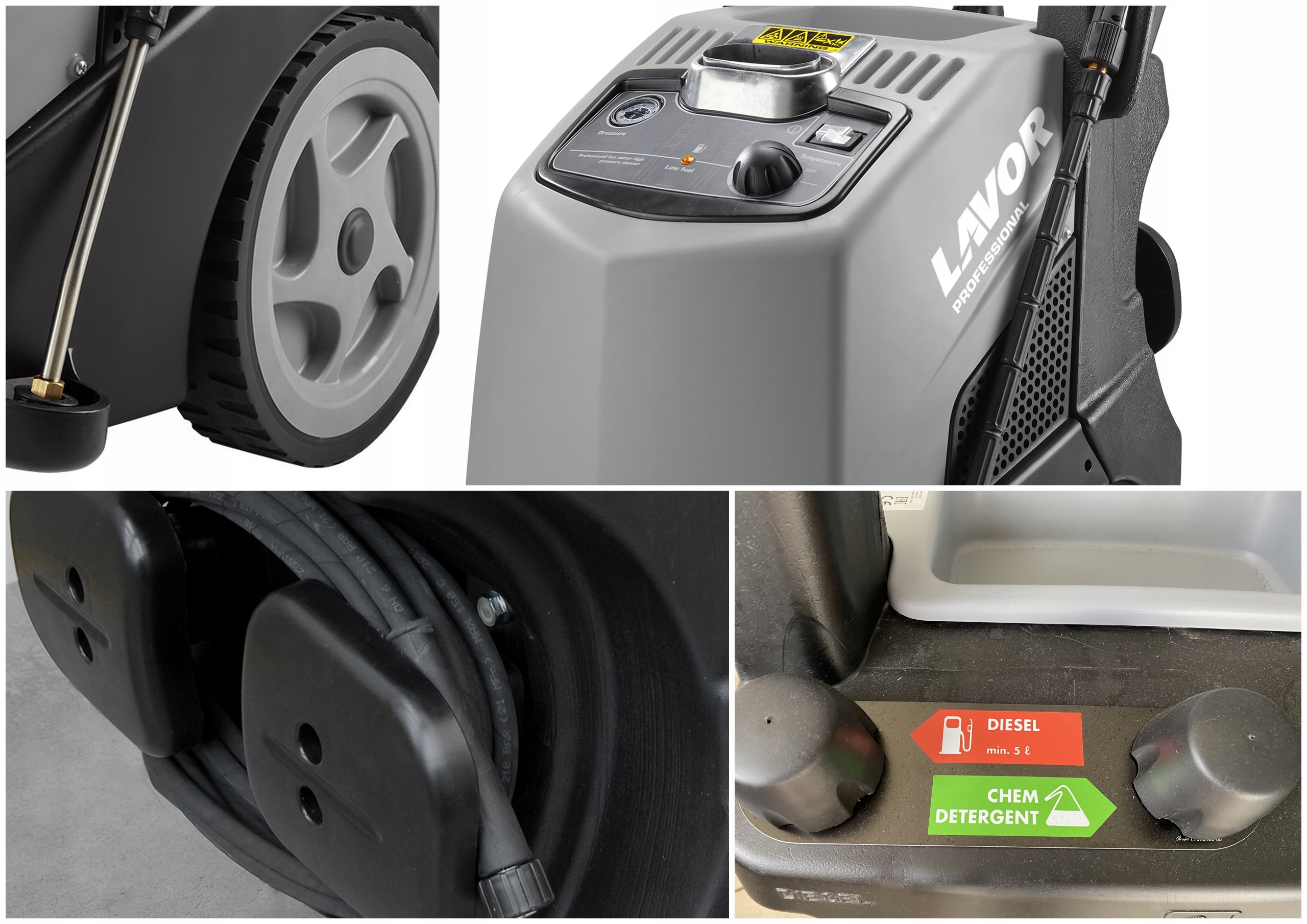 Моечная машина оснащена профессиональными аксессуарами. Пистолет латунный – для большей безопасности эксплуатации все соединения выполнены с латунной резьбой. Копье с НАСАДКОЙ с постоянным углом промывания. Шланг высокого давления с ДВОЙНОЙ ОПЛЕТКОЙ – благодаря такому решению он безопасен при высоком давлении и не подвержен механическим повреждениям.