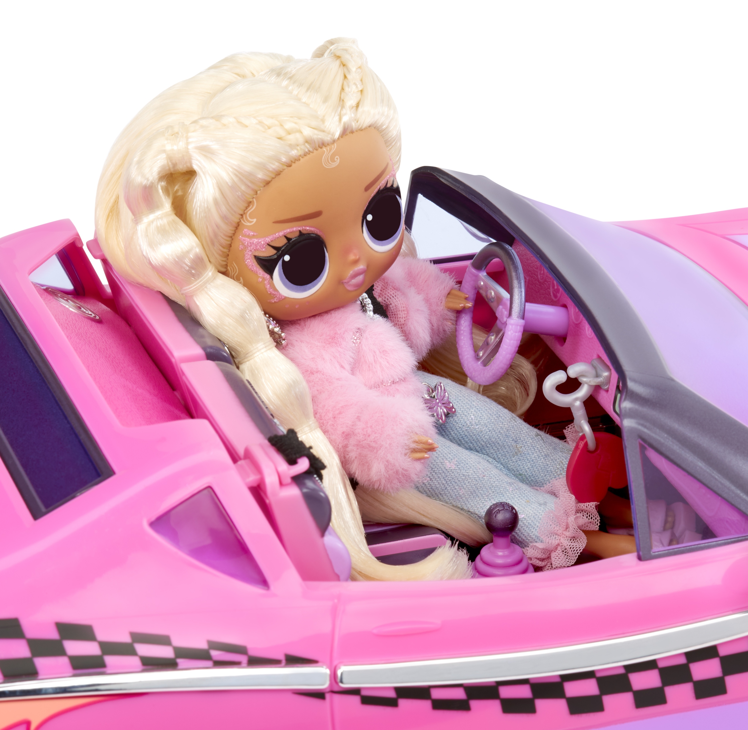 В машине есть сиденья для модных кукол OMG и Tweens, а также дополнительное сиденье, которое выдвигается и выдвигается, чтобы ваш любимый малыш мог сесть за руль!