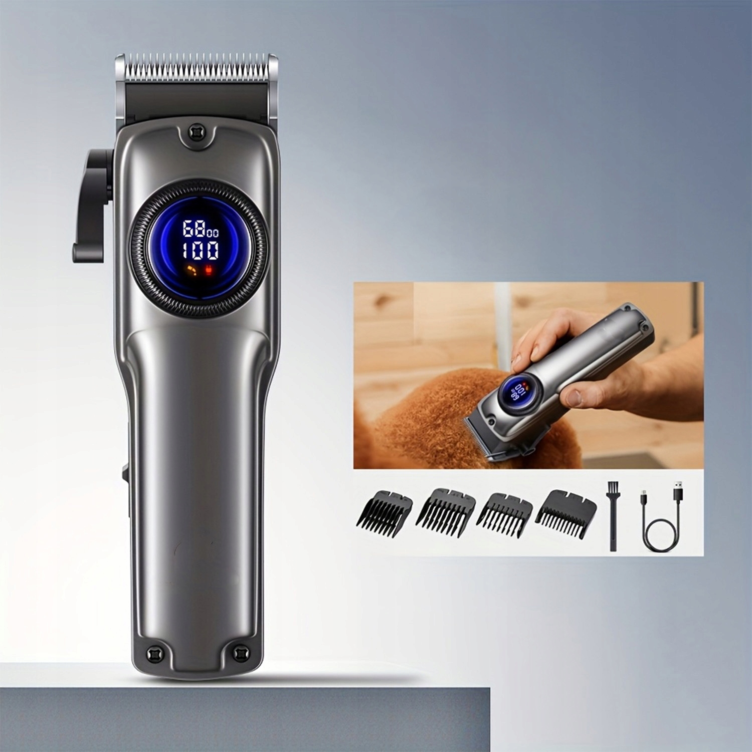 - ✔️Оснащенный мощным двигателем с медным сердечником со скоростью до 6800 об/мин, он легко справляется как с густой, так и с жесткой шерстью крупных собак, а также с мягкой шерстью кошек.