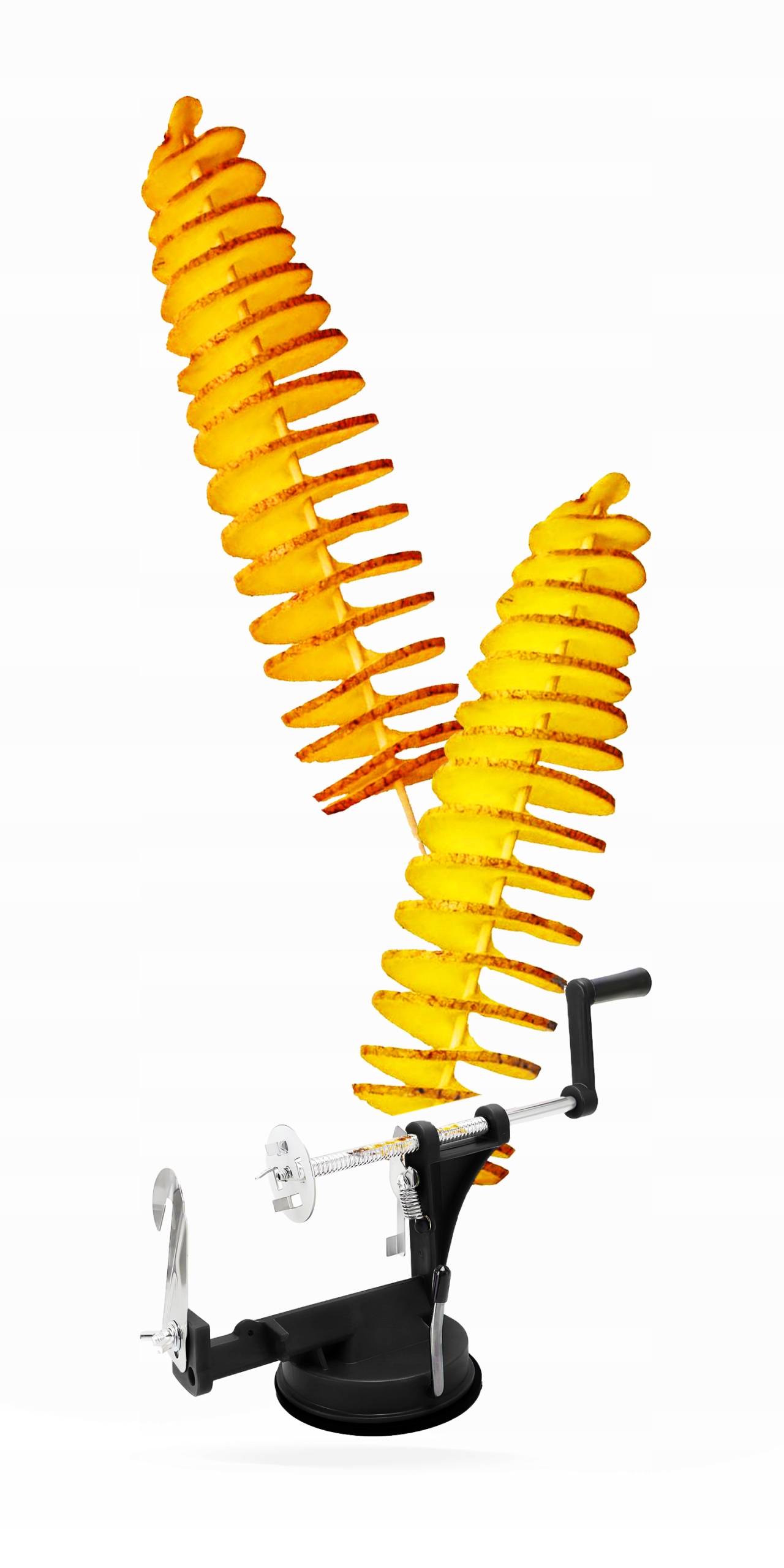 Острые ножи сделают всю работу за вас, обеспечивая идеально ровные спирали и ломтики. Рукоятка дает вам полный контроль над толщиной и длиной спирали — эффект решаете вы. Благодаря присоске устройство устойчиво стоит, что позволяет комфортно и безопасно резать.