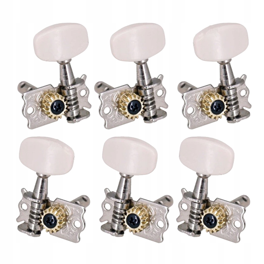 Универсальный набор : Содержит все необходимые элементы для сборки тюнеров акустической гитары: 6 колков для гитары, 6 направляющих втулок и все необходимые крепежные винты и шайбы.