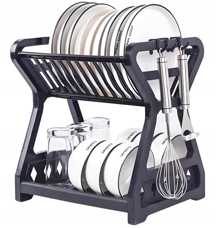 ✔ Практическая двухуровневая сушилка сосудов и столовых приборов сушилка, предназначенная для десертных тарелок, маленький ужин или суп. Он размещает пластины с диаметром максимума 21 см