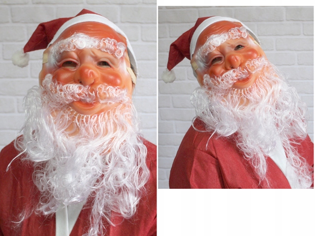 Кроме того, у маски уже есть борода и шляпа, так что она заполнит вашу праздничную маскировку !!! Маска изготовлена из резины (у нее есть отверстия для глаз, нос, губы).