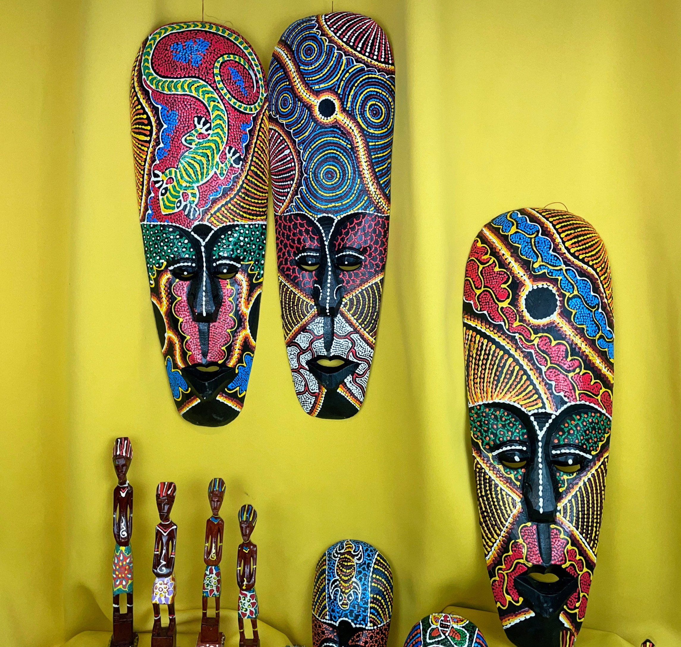 МАСКА ДЕРЕВ'ЯНА СКУЛЬПТУРА 50 СМ МІКС З 3 ВЗІЗУНКІВ