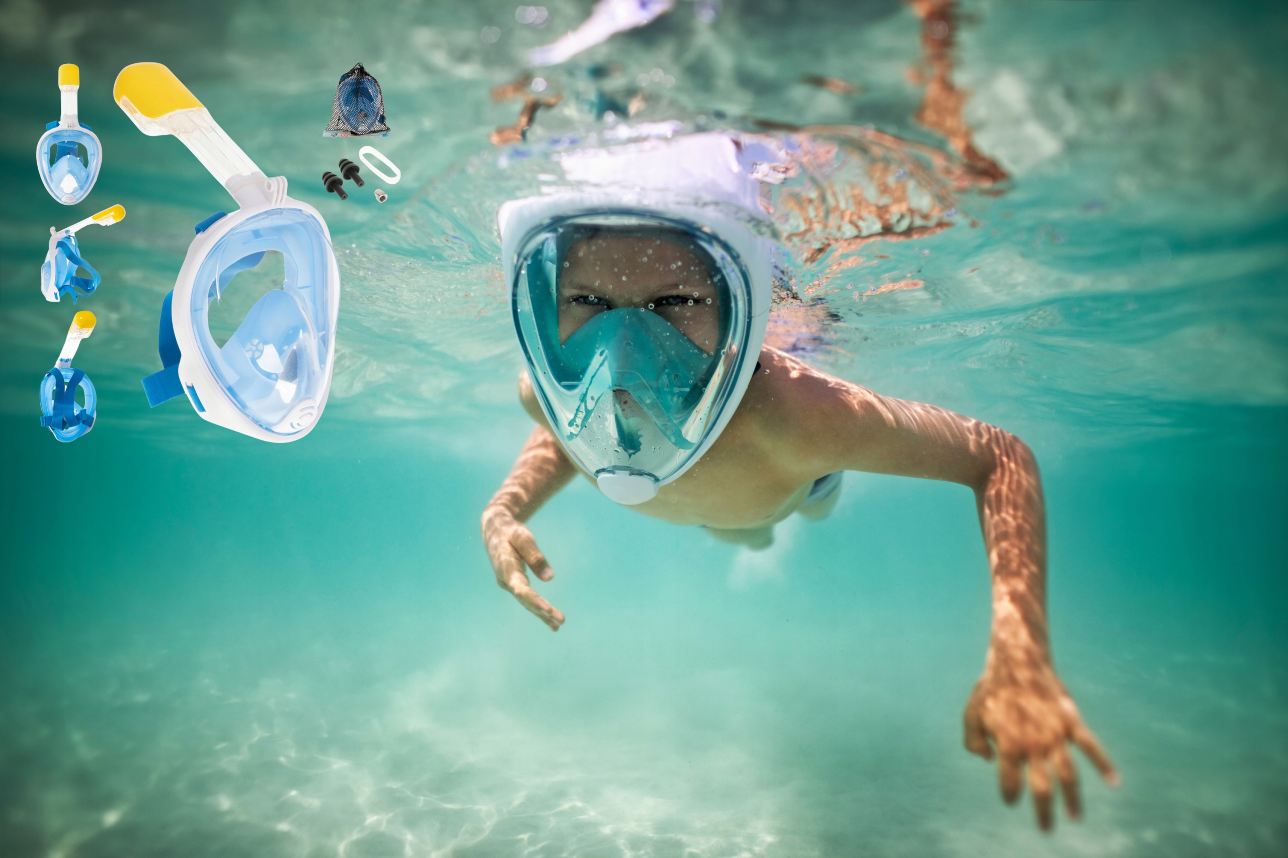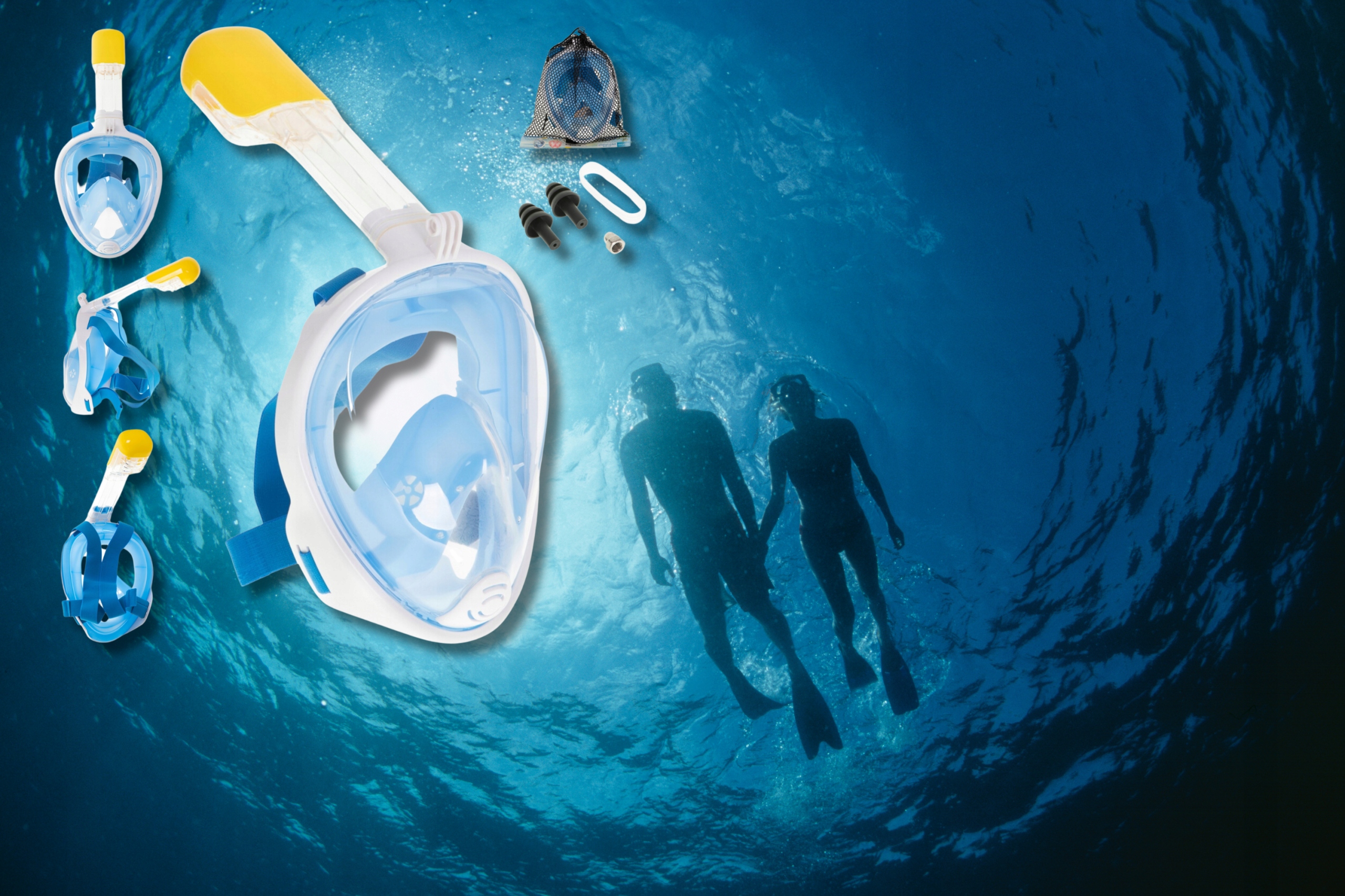 Маска для плавания с трубкой синей сноркелин