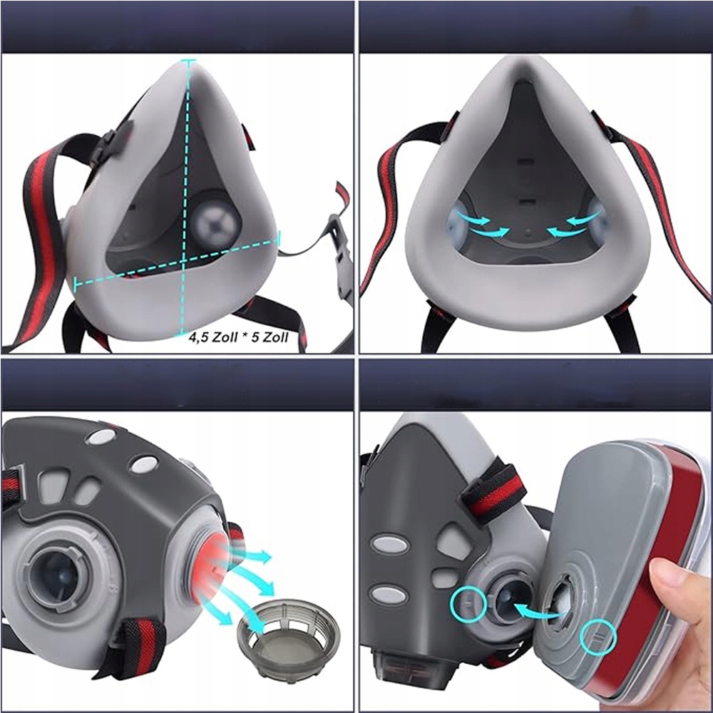 МАСКА ДЛЯ КРАСКИ, МНОГОРАЗОВАЯ ЗАЩИТНАЯ ПОЛУМАСКА, ПРОТИВ ПЫЛЕ + ФИЛЬТРЫ