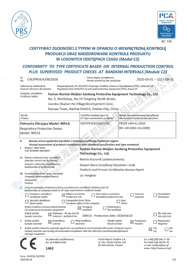 - ПРИМЕНЯЕТСЯ СТАНДАРТЫ PN-EN 149+A1:2010 (EN 149:2001+A1:2009)